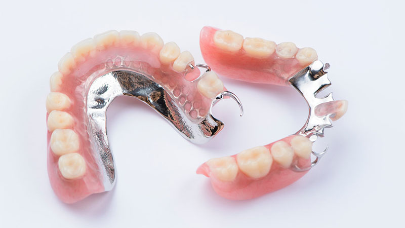 Наиболее удобным в применении является бюгельный протез. Он не закрывает небо и позволяет заместить утраченные зубы с обеих сторон зубного ряда. Конструктивной основой изделия является литая металлическая дуга. Протез крепится в полости рта при помощи кламмеров, специальных замковых механизмов или телескопических коронок.